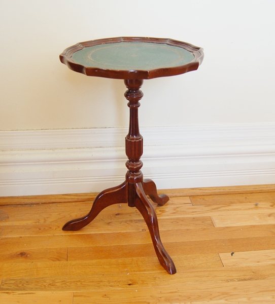 Small Pie Crust Table With Leather Top Ebth
