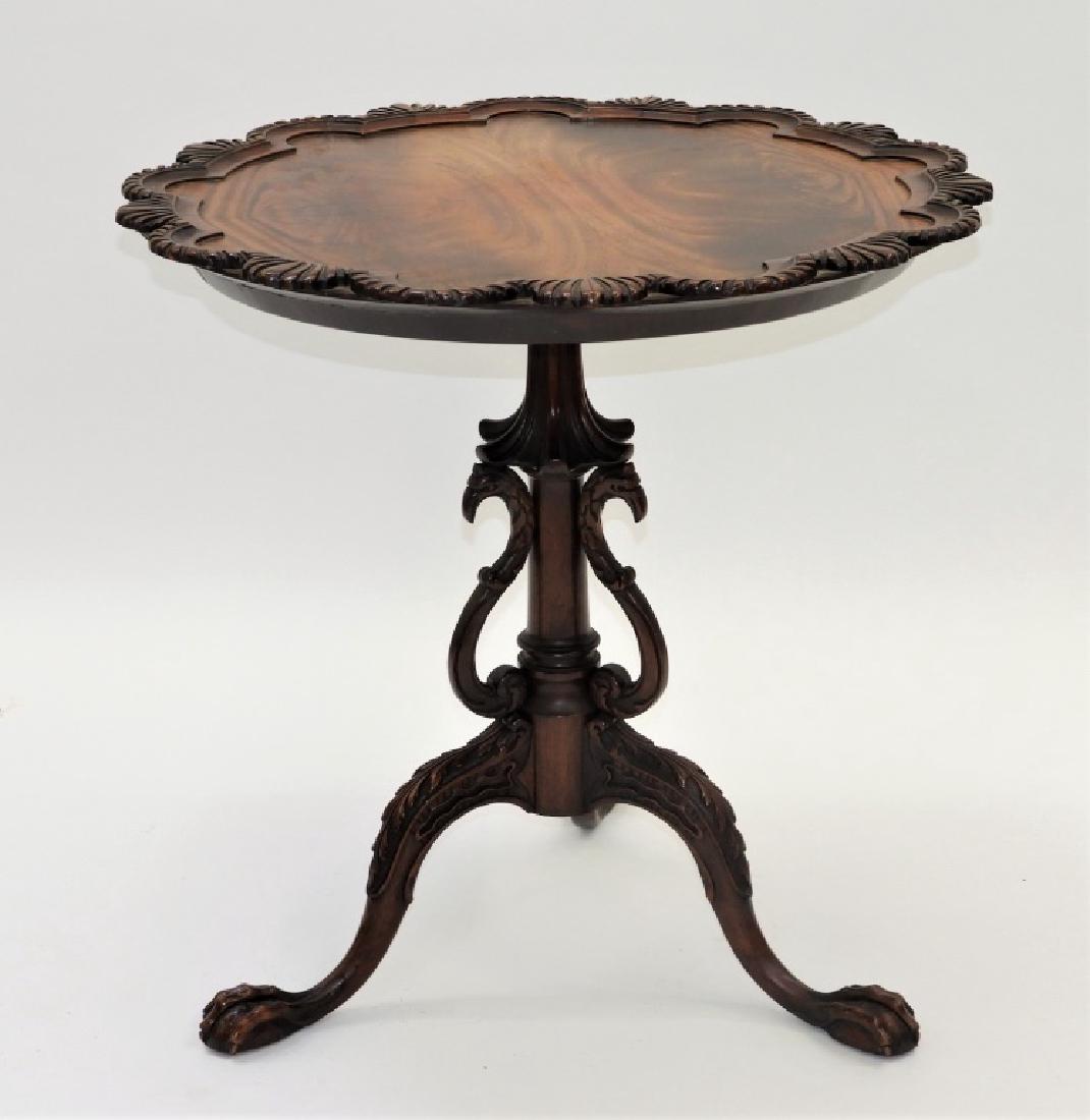 Chippendale Style Mahogany Tripod Table With Pie Crust Carved Top